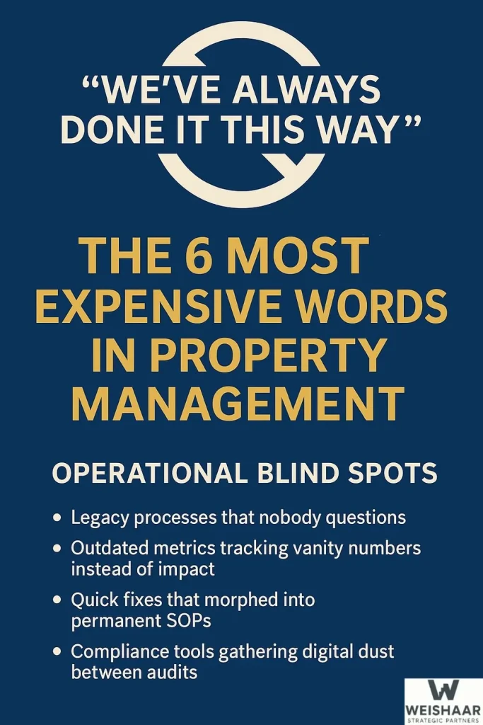 In property management, comfort is tempting. Familiarity feels safe. But the cost of those six words, “We’ve always done it this way,” is often far higher than we realize.
